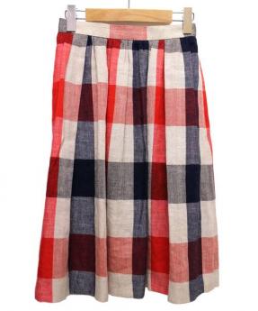ミディ丈リネン混チェックスカート