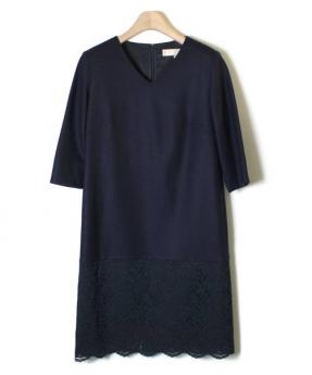 裾レースウールワンピース