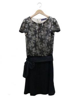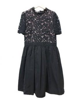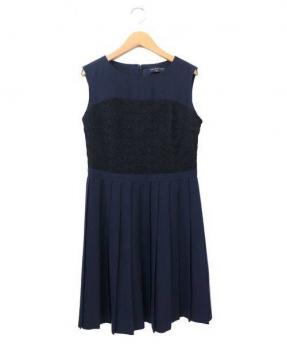 フラワーレース切替プリーツワンピース
