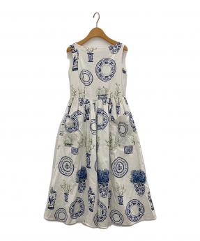 ブルーアンドホワイトプリントドレス
