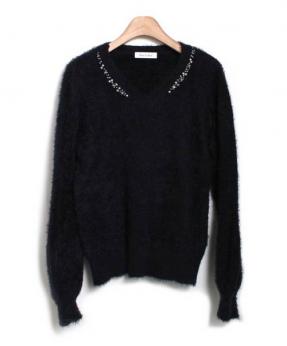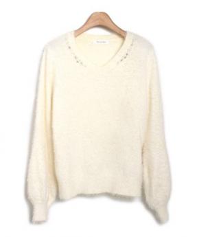 アクセ付Vネックニット