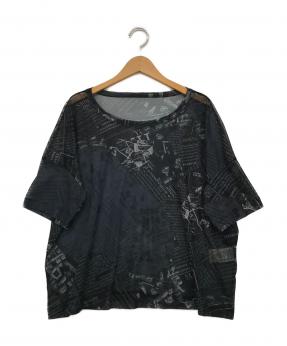 ニュースペーパープリント半袖チュールカットソー