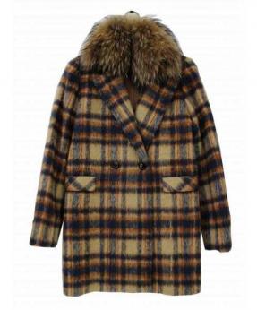 ウールシャギーチェックラクーンファーダブルコート