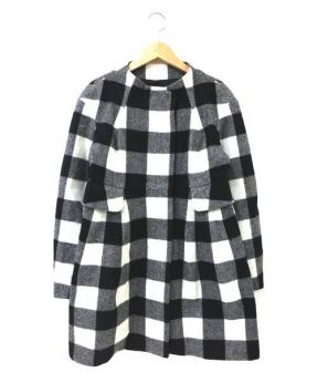 ブロックチェックウールコート