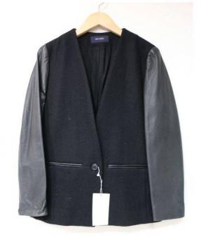 レザースリーブウールジャケット