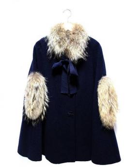 ティペット付袖ラクーンファーウールコート