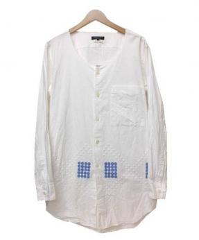 ノーカラードット刺繍ロングシャツ