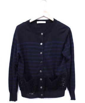 カットワーク切替ボーダーカーディガン