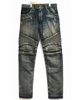 ダメージ加工デニムバイカーデニムパンツ