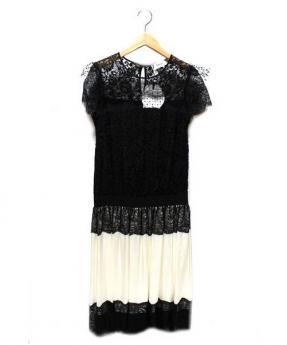 半袖レース切替シルクワンピース