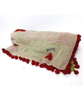 カシミヤ混ポンポン付きストール