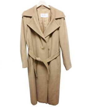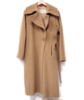 キャメルベルテッドロングコート