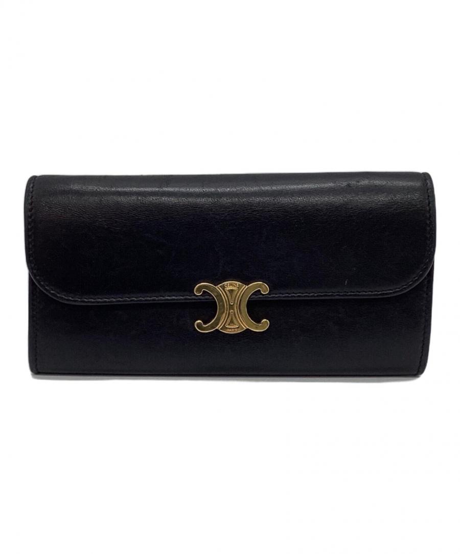 セリーヌのアイコンとして絶大な人気を誇るトリオンフ。クラス感溢れるブラックのカーフスキンに、ゴールドのモチーフが美しく映える長財布が届きました。