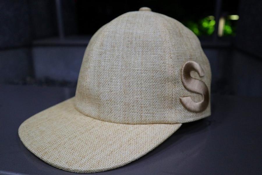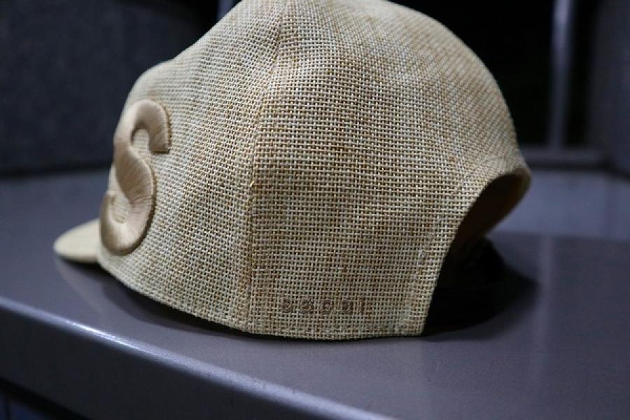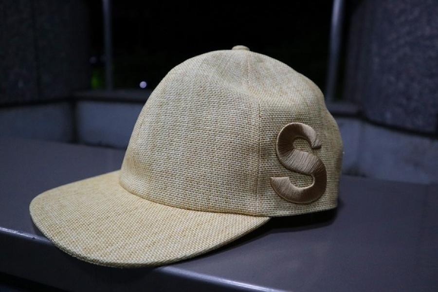 春夏らしい麦わら素材を使用したベースボールタイプのキャップ