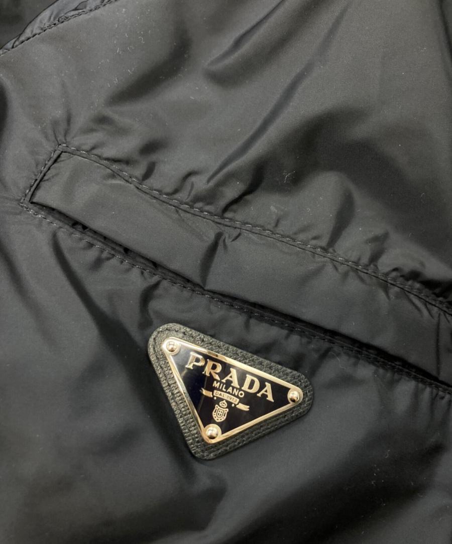 一見ブラックにも見えるほど深いネイビーは、光の当たり方で上品なツヤを放ちます。 PRADA特有の高密度ナイロン素材は、風を通さず、非常に軽量。春や秋のライトアウターとしてはもちろん、冬場のインナーとしても機能する万能選手です。
