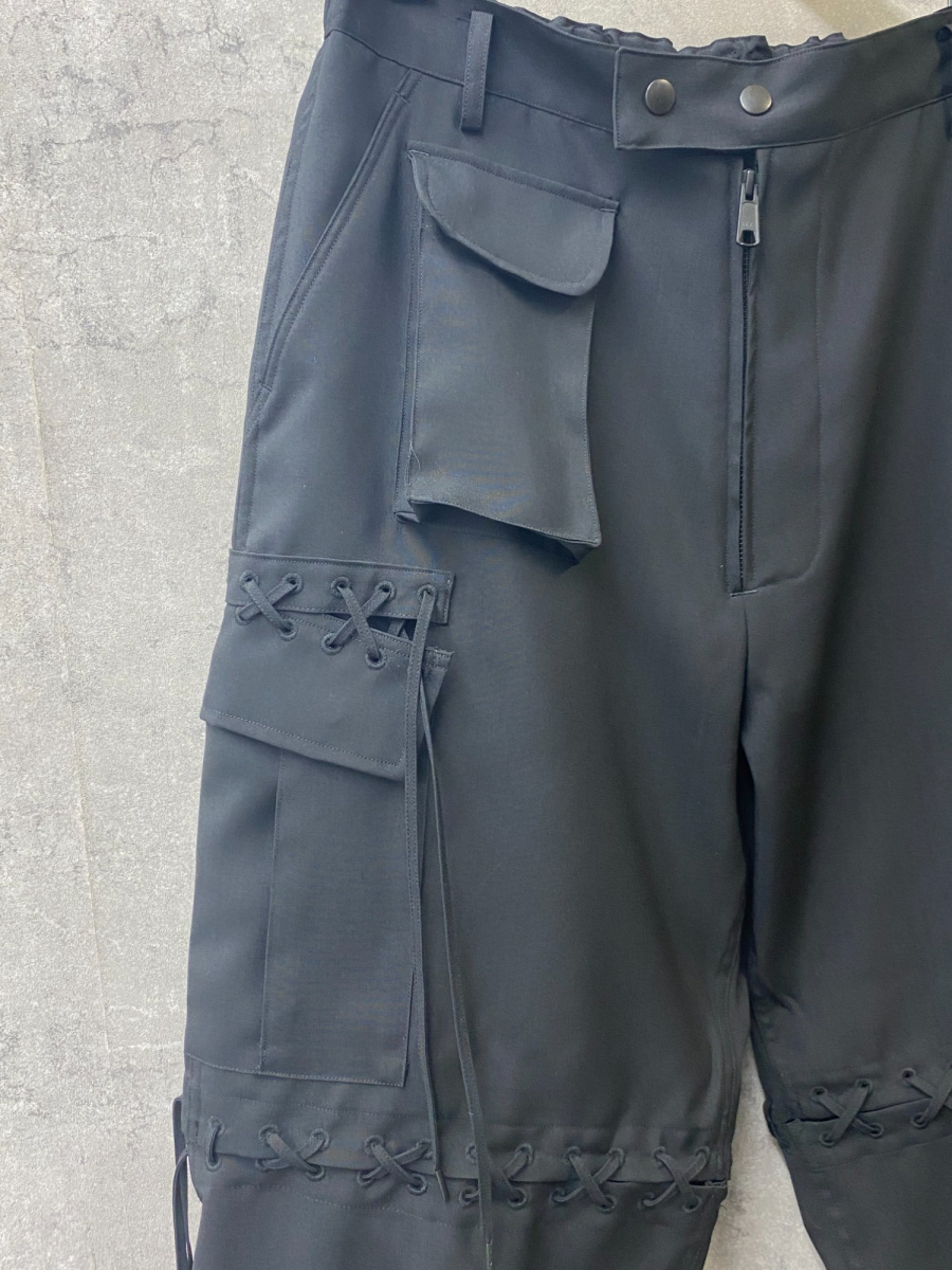 パラシュートパンツを基にサファリ要素を組み込んだカーゴパンツ。