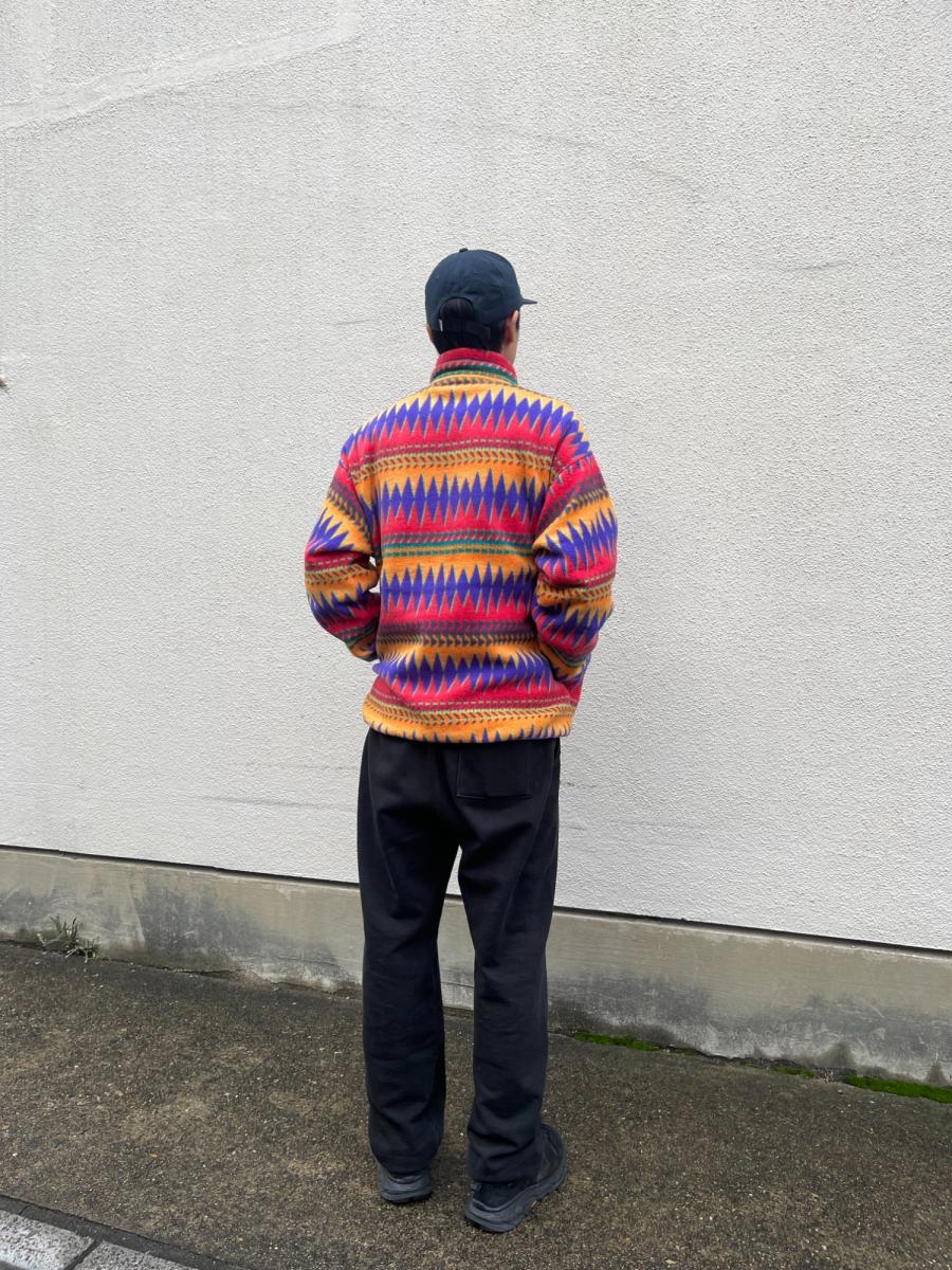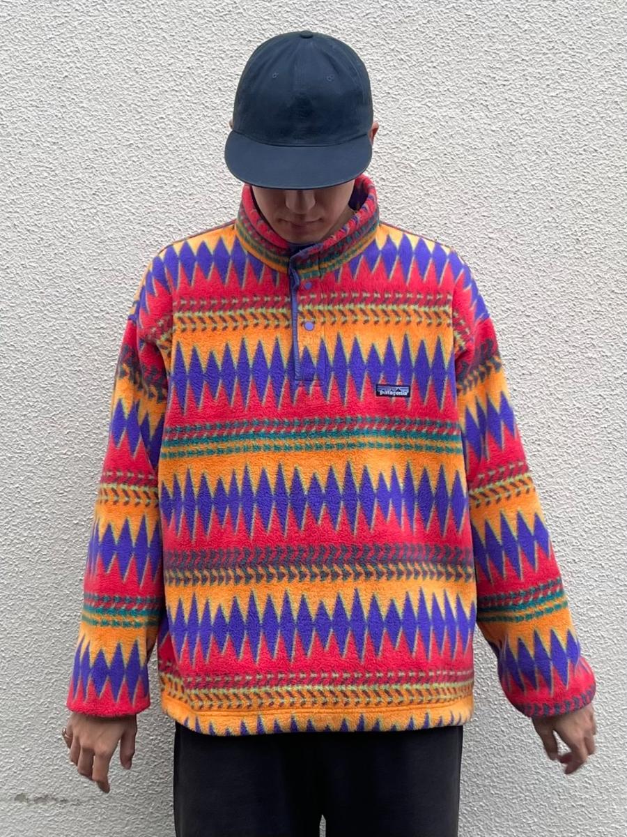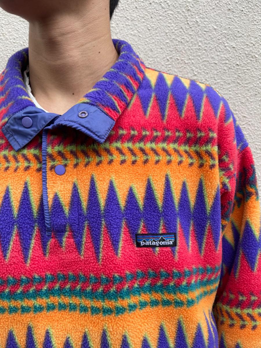 この複雑で鮮やかなパターンは市場に出回ることが少なく、探されていた方も多いのではないでしょうか。ヴィンテージならではの風合いと、長年愛用できるパタゴニアのタフな作りが魅力です。