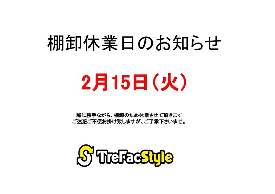 2月15日(火)棚卸による臨時休業のお知らせ