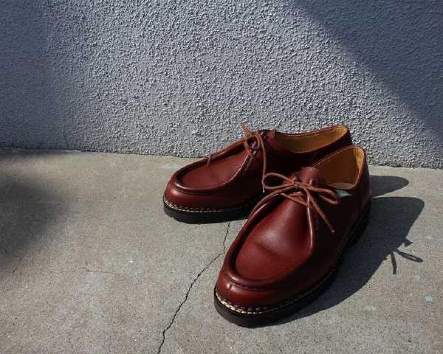 PARABOOT (パラブーツ) チロリアンシューズ MICHAEL(ミカエル) SIZE 26.5cm 当店販売価格49,800円(+TAX)Parabootの中でもCHAMBORD(シャンボード)と人気を2分する定番アイテムMICHAEL(ミカエル)。オイルをふんだんに含んだカーフレザー、通称「リスレザー」は、水に強く、劣化し辛い革。独特のマットな質感が美しく、「フランスの宝石」とも称されます。