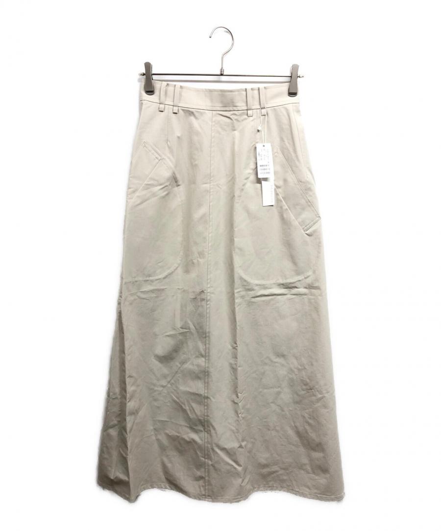 タグ表記は36サイズで、一般的なSサイズ相当の作りとなっています。ウエスト周りはすっきりとしていながら、腰から下にかけて優雅に広がるシルエットが絶妙。特筆すべきはフロントのアシンメトリーなスリットです。深すぎない絶妙なカッティングにより、ロング丈特有の重たさを感じさせず、軽やかな足捌きを実現しています。アイボリーの柔らかな色味は、手持ちのボーダーシャツやシンプルなニットとも相性が良く、シーズンレスに活躍してくれそうです。