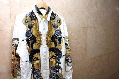 ヴィンテージさながらの煌びやかなプリントが全面に施されたシルクシャツ。