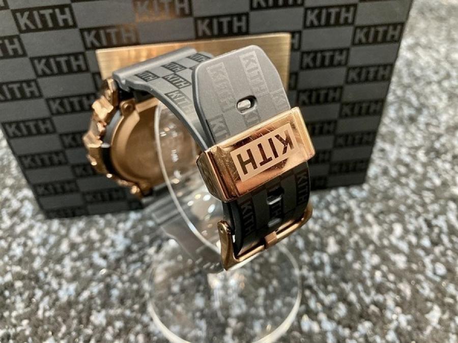 「6900」シリーズの25周年を記念したこちらのコラボモデル。G-SHOCKの特徴でもあるラウンドデザインはそのままに、インパクトのあるローズゴールドカラーを使用し、通常「G」ロゴが入る場所に「KITH」ロゴがあしらわれております。