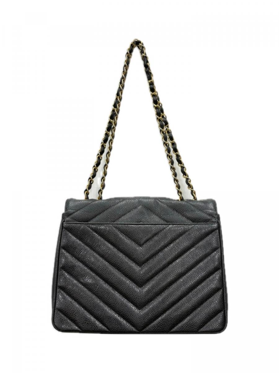 CHANELといえばダイヤ柄の「マトラッセ」が有名ですが、こちらはV字ラインが特徴的な**シェブロンステッチ(Vステッチ)**を採用しています。