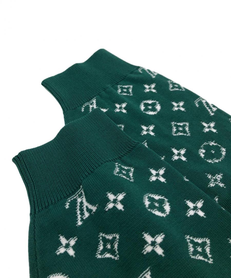 裾から上に向かってモノグラムが溶け込んでいくようなグラデーションは、ニット素材ならではの柔らかな質感と相まって、圧倒的な存在感を放ちます。