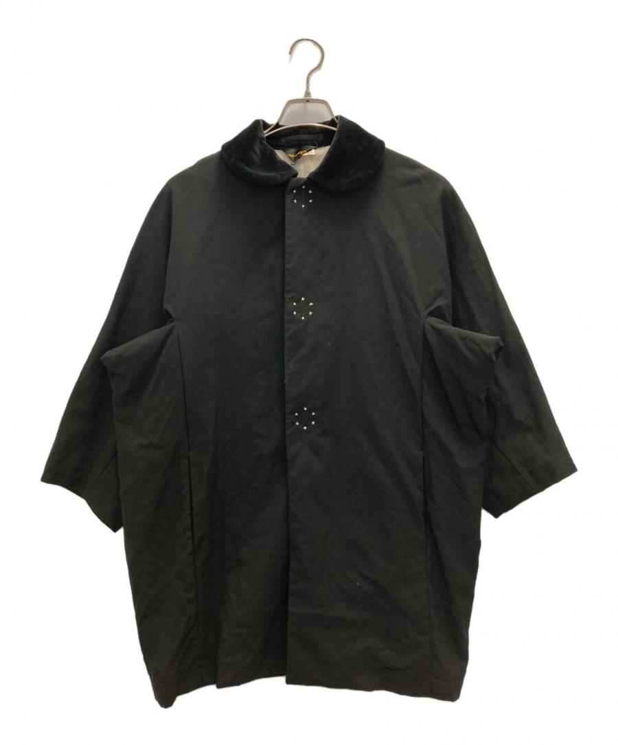 この後の詳細紹介の前に、まずはこのアイテムの持つ独特な空気感をお伝えさせてください。 一見するとミニマルなブラックコートですが、ギャルソンらしい「丸襟」のディテールが、ストイックな黒の中にふとした愛らしさを添えています。ただ可愛いだけではない、媚びない強さを秘めた一着です。