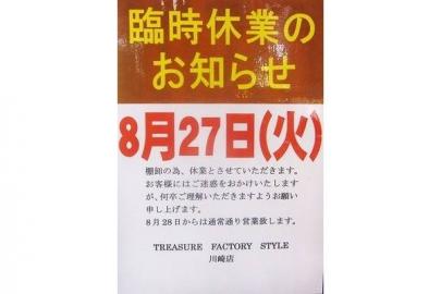 トレファクスタイル川崎店 ※臨時休業(8月27日)のお知らせ※