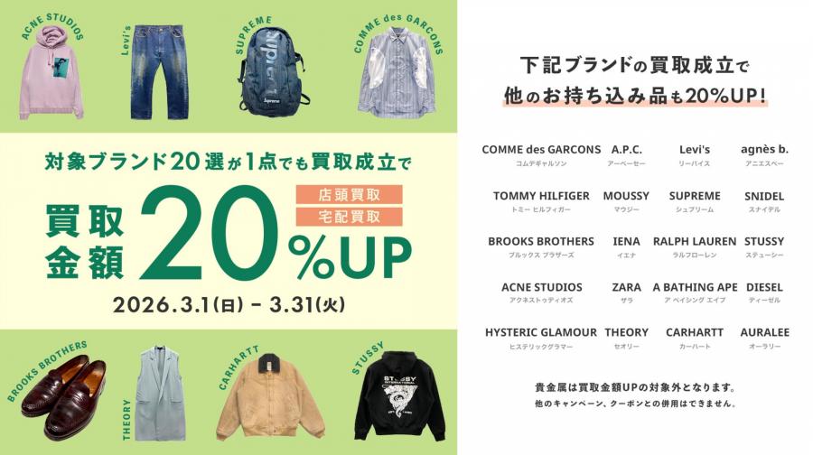 買取金額が【20%UP】するキャンペーンを【3/1~3/31】まで毎日実施しております!