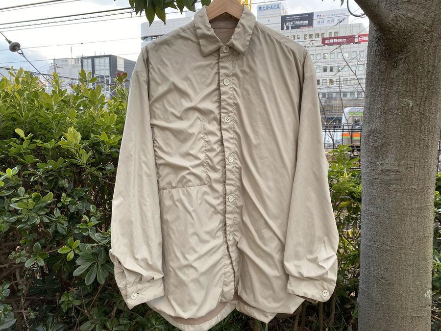 ポリエステルとウールのリバーシブル仕様のシャツジャケットとなっており、コーチジャケットとシャツをミックスしたようなアイテムとなっております。