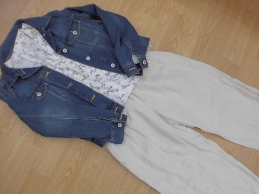 こちらは花柄のブラウスとデニムジャケットで春らしく♪